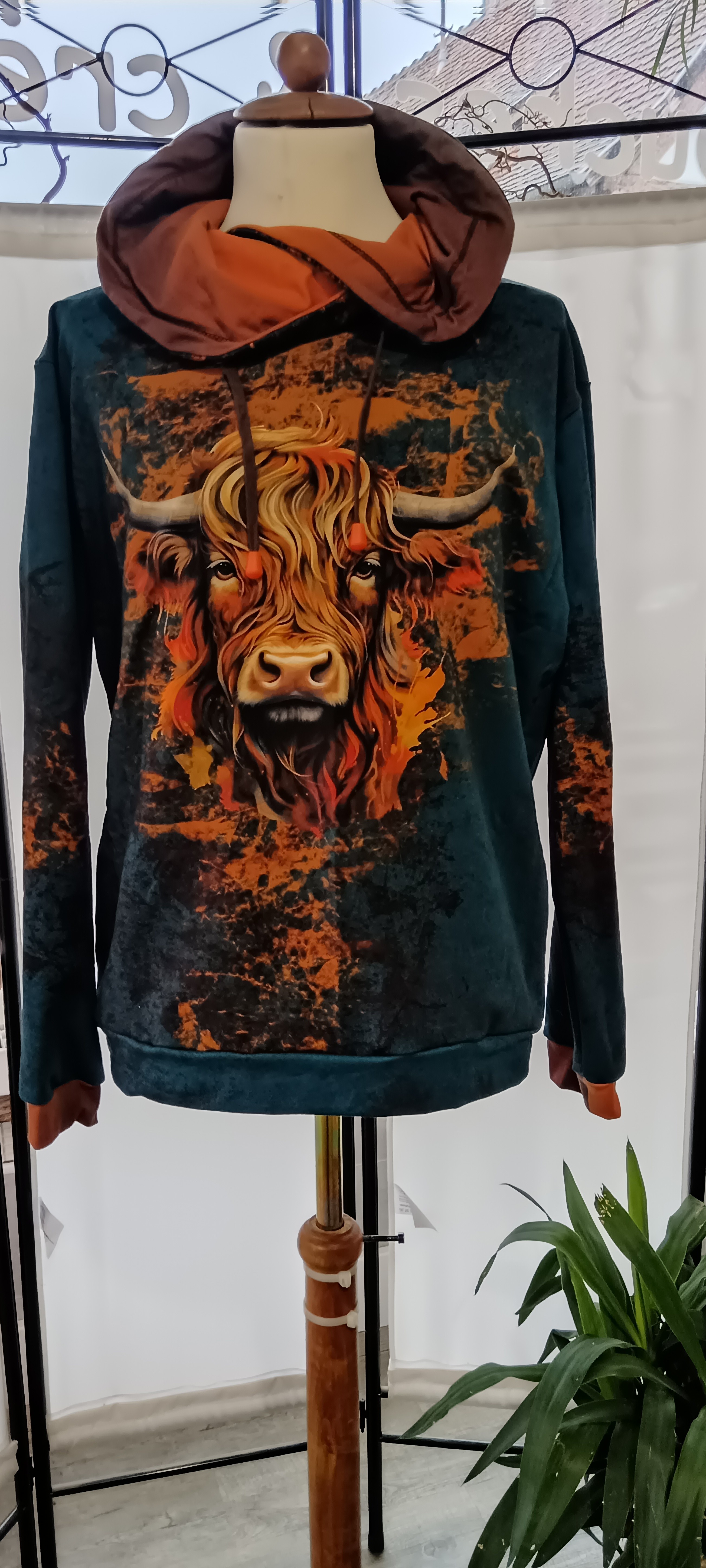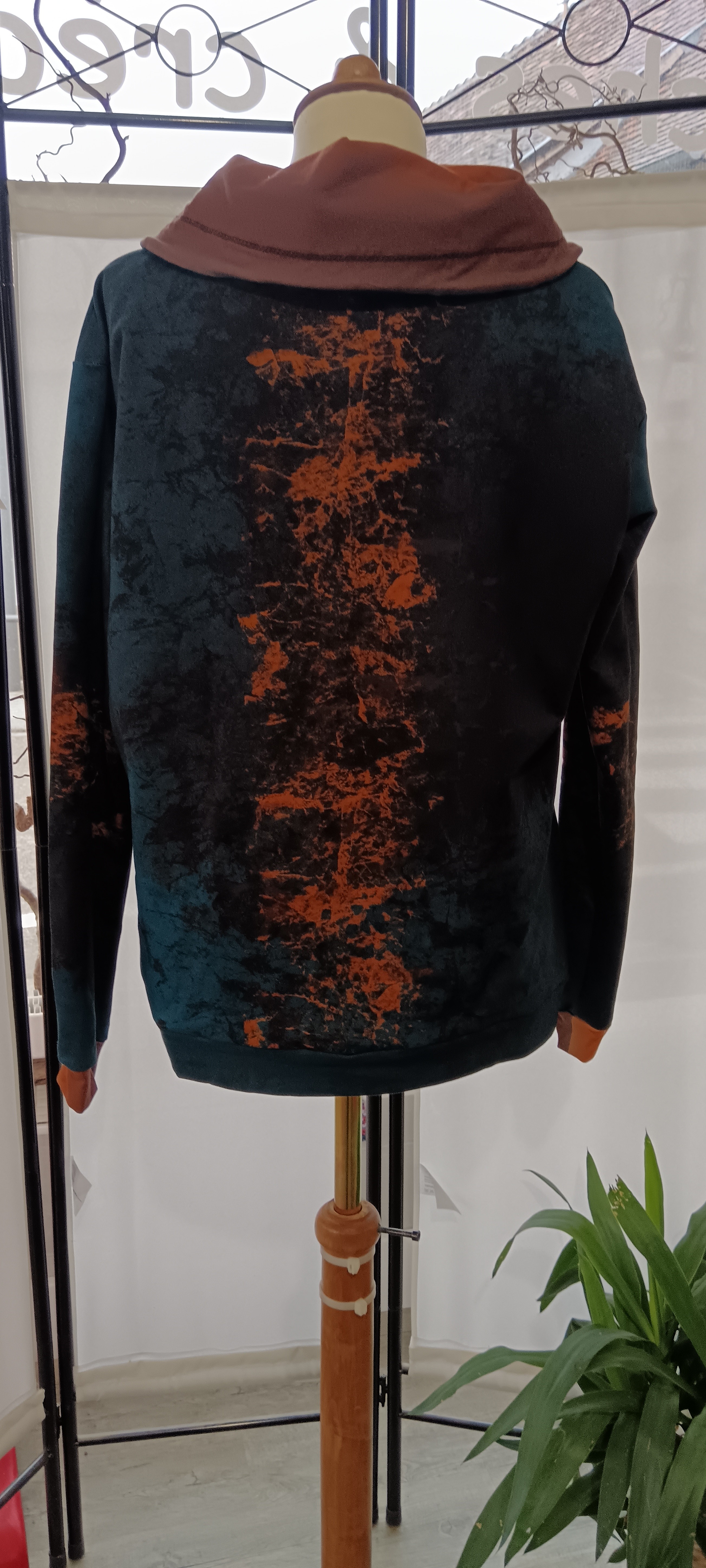 Sweat shirt en molleton fin, avec un col montant doublé en jersey.