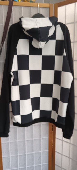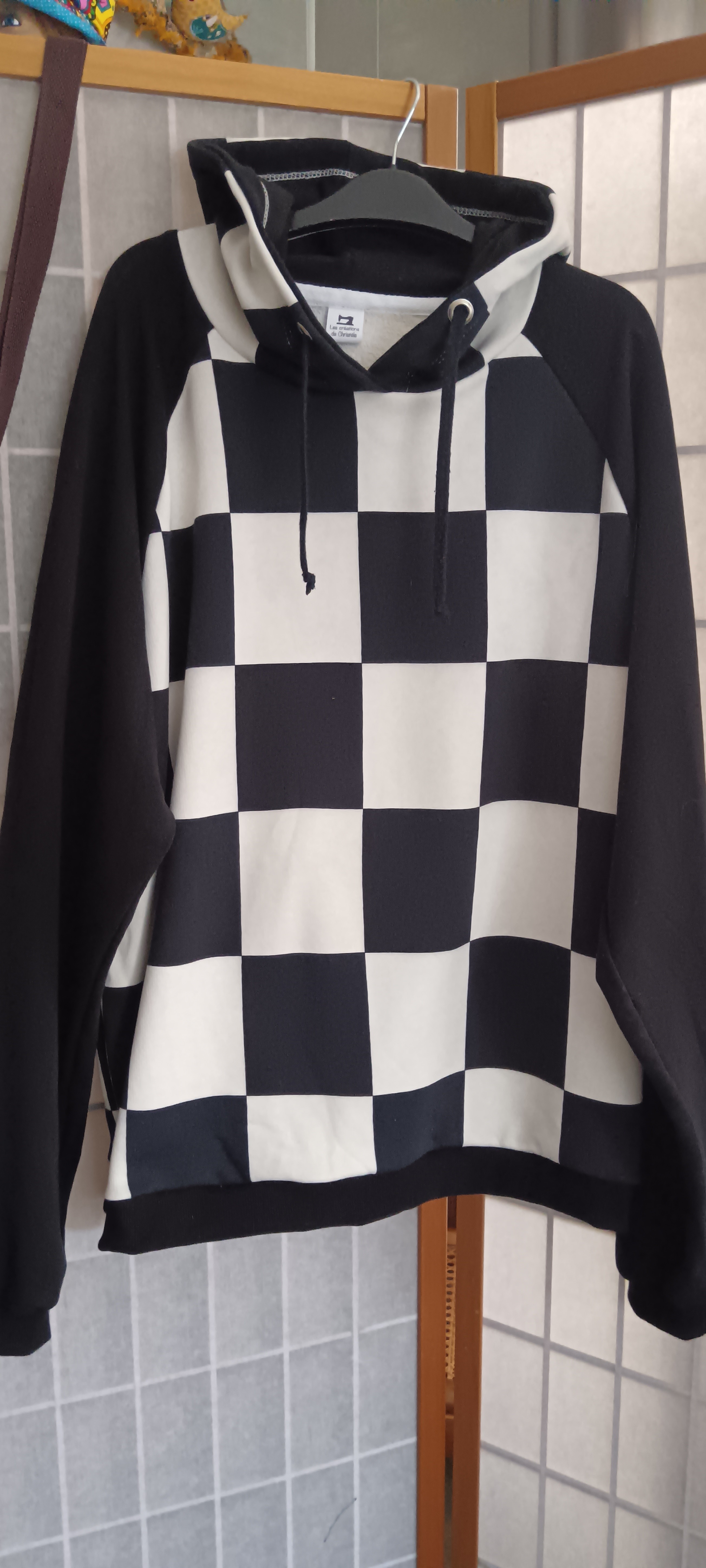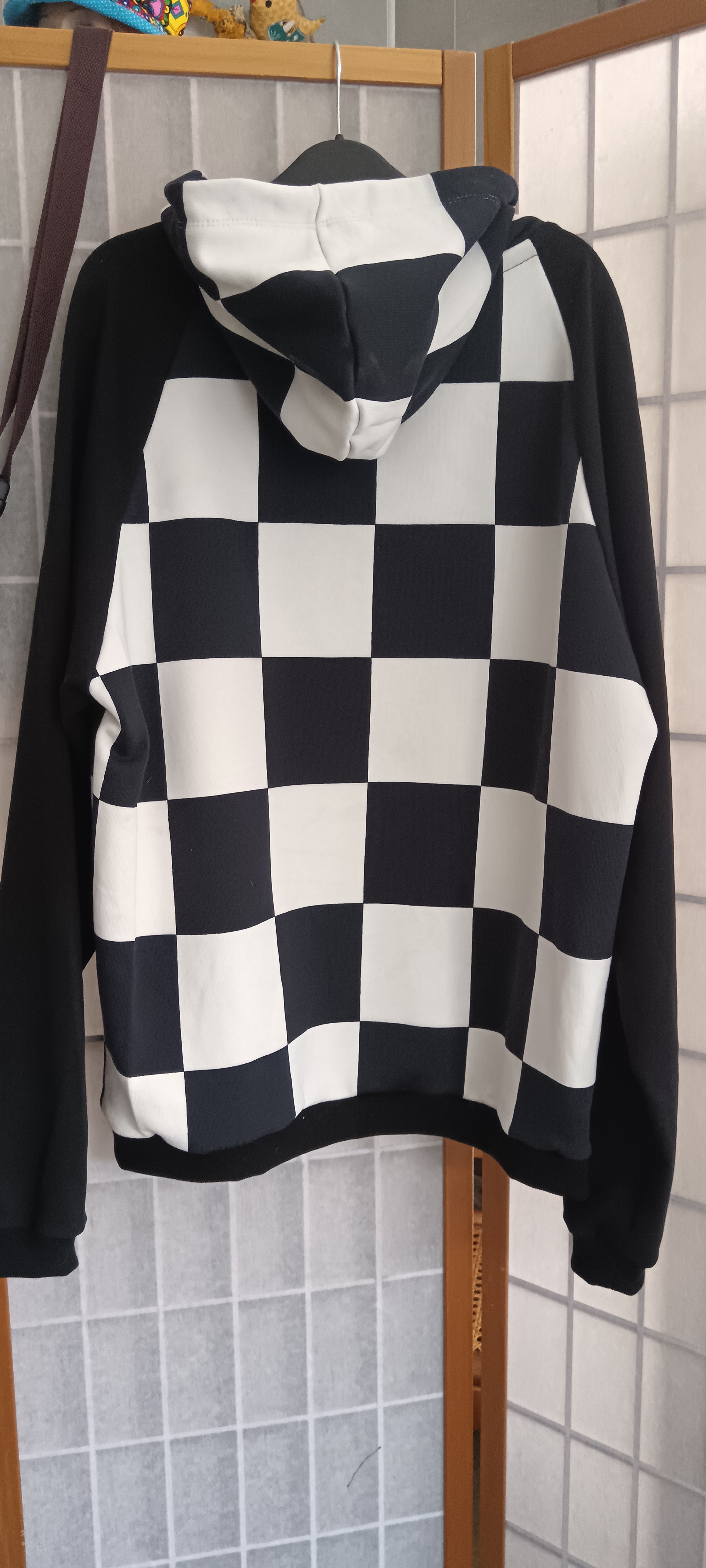Sweat shirt unique à carreaux, doté de manches raglan noires pour un style graphique et moderne
